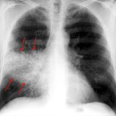 Relier Pairs RADIOGRAFIA DE TÓRAXVersion en ligne REPASARAS LOS CAMBIOS RADIOLOGICOS QUE SE PRESENTAN EN LAS DIFERENTES PATOLOGIAS DEL SSITEMA RESPIRATORIA par HUGO sanchez sanchez 1 histoplasmosis: crónica 2 absceso pulmonar: imagen de nivel hidroaéreo 3 tuberculosis miliar: imagen en "mijo" 4 bronquitis crónica: tórax sucio o deshilachado 5 tele de tórax normal 6 Neumonía : radiopacidad lobar 7 enfisema pulmonar: hiperinsuflación pulmonar 8 fibrosis pulmonar: infiltrado reticulonodular generalizado. 9 derrame pleural; curva de damoiseau 10 atelectasia: opacidad lineal debido a una obstrucción de un bronquio
