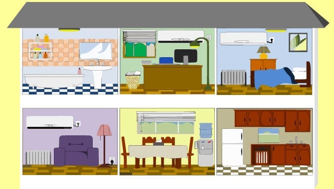 Partes de la casa Version en ligne Funciones par Eloisa Camargo Gomez 1 Sala 2 Baño 3 Dormitorio 4 Cocina 5 Sala comedor 6 Cuarto De Estudio