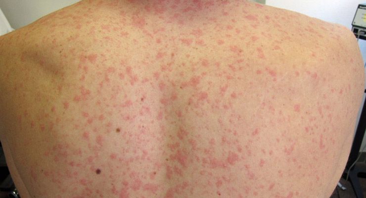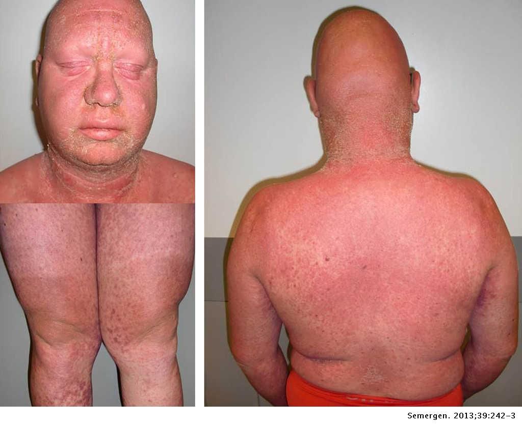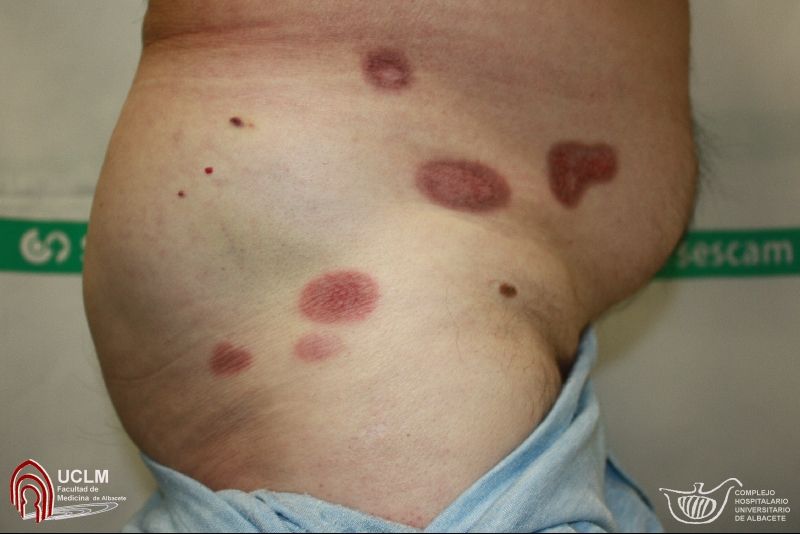Froggy Jumps Juego ToxicodermiasVersion en ligne Las toxicodermias son reacciones cutáneas muy variables que aparecen tras la administración de un fármaco. Constituyen uno de los efectos secunda- rios más frecuentes de los medicamentos. Los mecanismos de producción de muchas de ellas son desconocidos, ya sean inmunológicos o no. par Johanna Rodríguez Díaz 1 ¿Qué son las Toxicodermias? a Son reacciones cutáneas muy variables que aparecen tras la administración de un fármaco. b Son reacciones cerebrales que aparecen tras la administración de un fármaco. c Son reacciones musculares muy variables que aparecen tras la administración de un fármaco. 2 ¿Cuales son las principales Toxicodermias leves? a Exantema morbiliforme y fijo medicamentoso, Urticaria y angioedema, Esclerodermia. b Pustulosis exantemática generalizada aguda, Síndrome de DRESS, Anafilaxia y Eritrodermia c Todas 3 ¿Cuales son las principales Toxicodermias graves? a Eritema multiforme major y Eritema multiforme minor. b Exantema morbiliforme y fijo medicamentoso, Urticaria y angioedema, Esclerodermia. c Pustulosis exantemática generalizada aguda, Síndrome de DRESS, Anafilaxia y Eritrodermia 4 Ejemplos de Eritema multiforme a Eritema multiforme major y Eritema multiforme minor. b Espectro síndrome de Stevens-Johnson/necrólisis epidérmica tóxica (SSJ/NET) c Exantema morbiliforme y fijo medicamentoso, Urticaria y angioedema, Esclerodermia. 5 Selecciona la imagen que pertenezca a un Exantema morbiliforme. a b c 6 Selecciona la imagen que pertenezca a una Eritrodermia a b c 7 ¿Qué fármacos se utilizan para tratar los Exantema morbiliforme? a AINE • Trimetoprim-sulfametoxazol • Tetraciclinas • Pseudoefedrina b º Penicilinas • Sulfamidas • Cefalosporinas • Anticonvulsivantes c • Anticonvulsivantes • Sulfamidas • Abacavir • Alopurinol 8 ¿Qué son los Eritema multiforme? a una erupción grave de etiopatogenia inmunológica, casi siempre desencadenada por una bacteria b Una erupción aguda de etiopatogenia inmunológica, casi siempre desencadenada por un virus patógeno c Una erupción aguda de etiopatogenia inmunológica, casi siempre desencadenada por una infección 9 ¿Qué es el Síndrome de baboon (o del babuino) o SDRIF? a Erupción eritematosa simétrica localizada en las mejillas y la región anogenital b Erupción eritema- tosa simétrica localizada en las nalgas y la región anogenital c Erupción eritematosa simétrica localizada en las mejillas y la región vaginal 10 ¿Cual es el indice de mortalidad del Síndrome de DRESS? a 5-10% b 1-2% c 5% 11 ¿Cómo se ve una reacción acneiforme? a b c 12 Esto es una ? a Exantema fijo medicamentoso. b Urticaria y angioedema c Exantema morbiliforme.