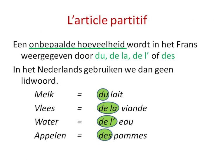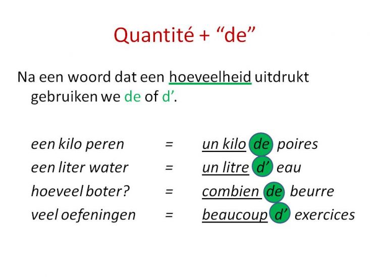 GR L'art. part. et la quantitéVersion en ligne Uitleg over wanneer je het article partitif (du, de la, de l', des) gebruikt en over de woorden die hoeveelheid (+de) uitdrukken. par Annique Thoelen 1 GR1 2 GR2