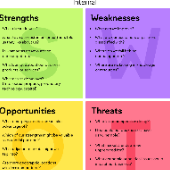 Relier Pairs Topik 8 SWOT Analysis (Modul Bertulis)Version en ligne Padankan fasa Analisis SWOT berikut mengikut kesesuaian. par Nur Wanita Bangi 1 2 Opportunity (Peluang) 3 Weakness (Kelemahan) 4 Strength (Kekuatan) 5 Threat (Ancaman) 6 Menilai Ketidakcekapan 7 Menilai Kepentingan Not significant, Significant, Serious, Disastrous Untuk mengetahui kelemahan atau kekurangan sistem semasa Untuk mengetahui peluang yang ada dari kekuatan dan kelemahan sistem ini bagi membangunkan sistem atau media baharu atau menambahbaik sistem atau media sedia ada Analisis untuk mengetahui kekuatan atau kelebihan sistem semasa Critical, Important, Not Important, Not Relevant Analisis SWOT Mengambil kira tentang ancaman atau batasan seperti masa dan kewangan untuk melaksanakan apa yang nampak boleh dilaksanakan di dalam sistem tersebut