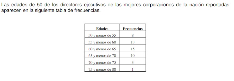 medidas de tendencia central (D)Version en ligne La medidas de centralización nos indican en torno a qué valor (centro) se distribuyen los datos. par Cyndi Flores Martinez 1 En promedio los encuestados contestaron aproximadamente a 3 preguntas b 3,41 preguntas c 3,83 preguntas d 4 preguntas 2 la siguiente formula representa a Moda datos no agrupados b Media aritmetica para datos agrupados c Moda para datos agrupados d Mediana para datos agrupados 3 Es el valor que tiene mayor frecuencia absoluta a Media Aritmetica b Mediana c Promedio d Moda 4 Es el valor que ocupa el lugar central de todos los datos cuando éstos están ordenados de menor a mayor a Moda datos no agrupados b Media aritmetica para datos agrupados c mediana d Mediana para datos agrupados 5 Es el valor obtenido al sumar todos los datos y dividir el resultado entre el número total de datos a Media Aritmetica b moda c mediana d ninguna de las anteriores 6 En un test realizado a un grupo de 42 personas se han obtenido las puntuaciones que muestra la tabla. Calcula la puntuación media. a 43,33 b 45,33 c 55,33 d Imposible calcular 7 ¿cual es el promedio que tiene los directores ejecutivos? a 8 b 9,33 c 8.33 d 7,83 8 ¿ Cual es la edad mas reportada que presentan los ejecutivos? a Entre 60 y menos de 55 b Entre 70 y menos de 75 c Entre 55 y Menos de 60 d Ninguna de las anteriores 9 ¿ Sobre el 50% de los Ejecutivos, Que edad presenta este grupo? a 8 b 13 c 15 d 10
