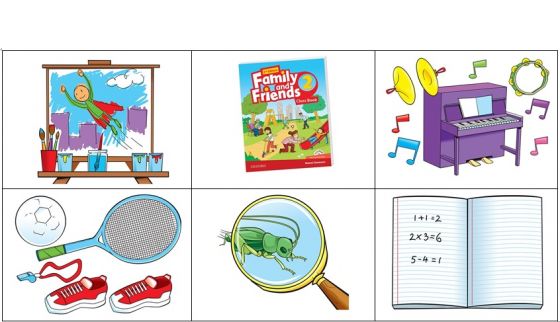 Unit 5 - Vocabulary - SubjectsVersion en ligne Click on the right picture. par Diego Maté Potes 1 Art 2 English 3 Music 4 PE 5 Science 6 Maths