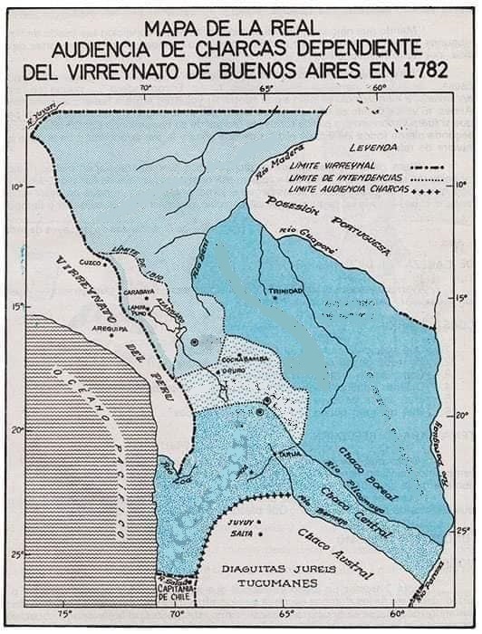 3° A Mapa de la Audiencia de CharcasVersion en ligne Identifica las Gobernaciones e Intendencias de la Real Audiencia de Charcas par Joel Tarquino Enao 1 INTENDENCIA DE SANTA CRUZ 2 INTENDENCIA DE LA PAZ 3 INTENDENCIA DE POTOSÍ 4 GOBIERNO DE CHIQUITOS 5 INTENDENCIA DE LA PLATA 6 GOBIERNO DE MOJOS