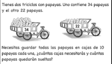 Problemas de matematicasVersion en ligne Se mostraran algunos problemas sencillos para matematicas par Nathalia Salamanca 1 Una bolsa con harina en un platillo de la balanza pesa 8000 gr. Las pesas que debo poner en el otro platillo para equilibrar la balanza son: a b c d 2 Andrea tiene que leer un libro para la clase de estudios sociales. Anoche ella leyo ½ libro. Esta mañana ella leyó 1/3 de libro. Si ella aun tiene 25 paginas mas por leer. ¿Cuántas paginas tiene el libro? a 50 b 75 c 125 d 150 3 ¿Cuantas cajas? a Necesitarás 6 cajas y quedarán 6 papayas b Necesitarás 5 cajas y quedarán 6 papayas c Necesitarás 56 cajas y no quedaran papayas d Necesitarás 6 cajas y quedarán 5 papayas 4 ¿ Que numero sigue en la secuencia? a 56 b 58 c 63 d 61 5 Los dibujos muestran las posiciones de una rueda que gira un movimiento ordenado en el sentido de la flecha a b c d