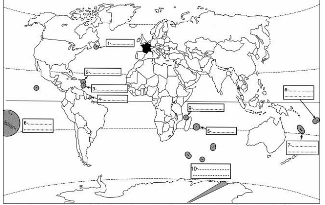 localiser les DROM - COMVersion en ligne Localiser les DROM - COM, repères Géographiques du Diplôme National du Brevet par Sebastien Turpin 1 GUYANE 2 FRANCE 3 WALLIS ET FUTUNA 4 GUADELOUPE 5 POLYNÉSIE FRANÇAISE 6 TAAF 7 NOUVELLE-CALÉDONIE 8 St PIERRE ET MIQUELON 9 LA RÉUNION 10 MARTINIQUE 11 MAYOTTE