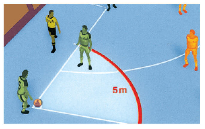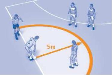 Cuando un equipo es sancionado con más de cinco faltas acumulativas, la siguiente falta se castigará con un lanzamiento libre desde el punto de doble penalti situado a 10 metros.