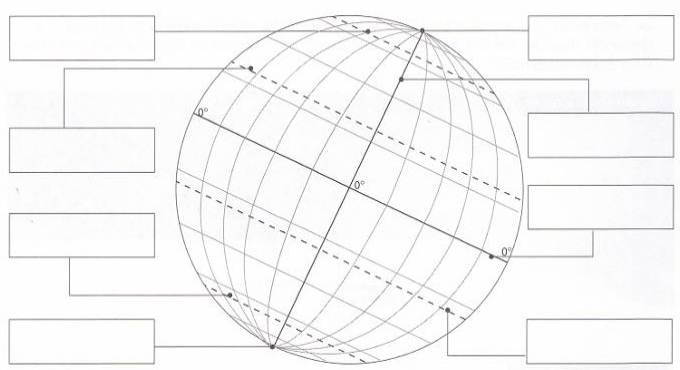 Líneas imaginarias de la TierraVersion en ligne Identifica las líneas imaginarias de la Tierra par Fernando Pérez Fernandez 1 POLO NORTE 2 POLO SUR 3 CÍRCULO POLAR ÁRTICO 4 TRÓPICO DE CÁNCER 5 ECUADOR 6 TRÓPICO DE CAPRICORNIO 7 CÍRCULO POLAR ANTÁRTICO 8 MERIDIANO DE GREENWICH