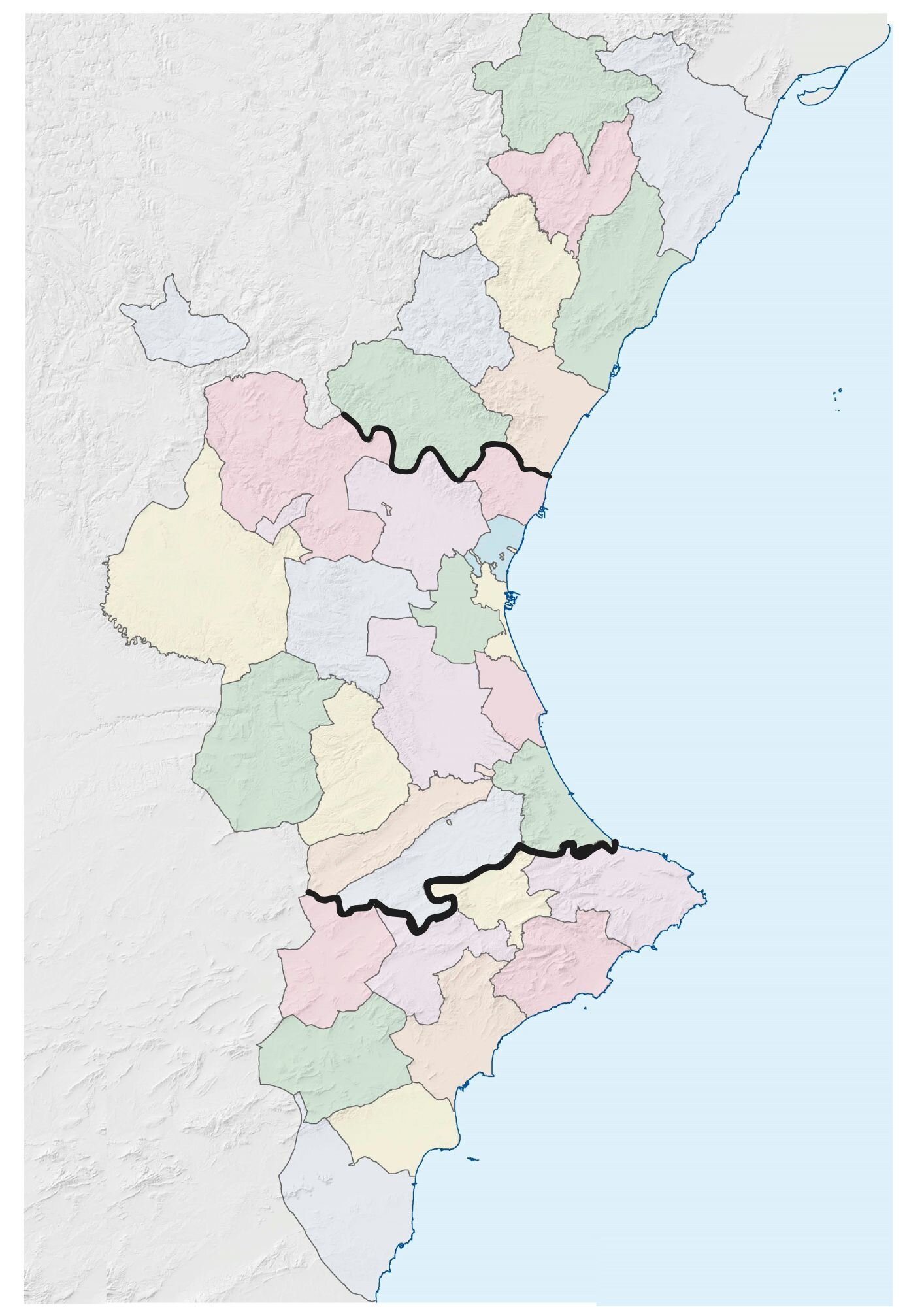 MAPA DE COMARCAS DE LA COMUNIDAD VALENCIANAVersion en ligne NOMBRES par Cielo Torres 1 LOS PUERTOS / EL PORTS 2 BAJO MAESTRAZGO 3 ALTO MAESTRAZGO 4 El ALCALATEN 5 ALTO MIJARES 6 LA PLANA ALTA 7 LA PLANA BAJA / BAIXA 8 ALTO PALANCIA 9 RINCON DE ADEMUZ 10 LA SERRANÍA 11 CAMPO DE TURIA 12 CAMP DE MORVEDRE 13 LA PLANA DE UTIEL- REQUENA 14 LA HOYA DE BUÑOL 15 L’HORTA NORD 16 VALENCIA 17 L’HORTA SUD 18 VALLE DE COFRENTES / LA VALL DE COFRENTES-AYORA 19 LA COSTERA 20 CANAL DE NAVARRES 21 LA RIBERA ALTA 22 LA RIBERA BAIXA 23 LA SAFOR 24 VALLE DE ALBAIDA / LA VALL D’ALBAIDA 25 ALTO VINALOPO 26 LA HOYA DE ALCOY / L"ALCOLA 27 EL CONDADO / EL COMTAT 28 LA MARINA ALTA 29 LA MARINA BAJA / LA MARINA BAIXA 30 CAMPO DE ALICANTE / L"ALCANTI 31 VINALOPÓ MEDIO 32 EL BAJO VINALOPO 33 LA VEGA BAJA DEL SEGURA