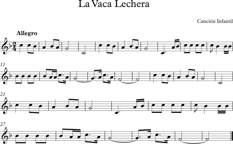 Partitura Version en ligne Reconocer los elementos de la patitura. par Cristina Avín Expósito 1 Clave de sol 2 Blanca 3 Puntillo 4 Corcheas 5 Negra 6 Compás 2x4 7 Línea divisoria 8 Ligadura de unión 9 Línea adicional 10 Doble barra final 11 Título de la canción 12 Tempo de la canción