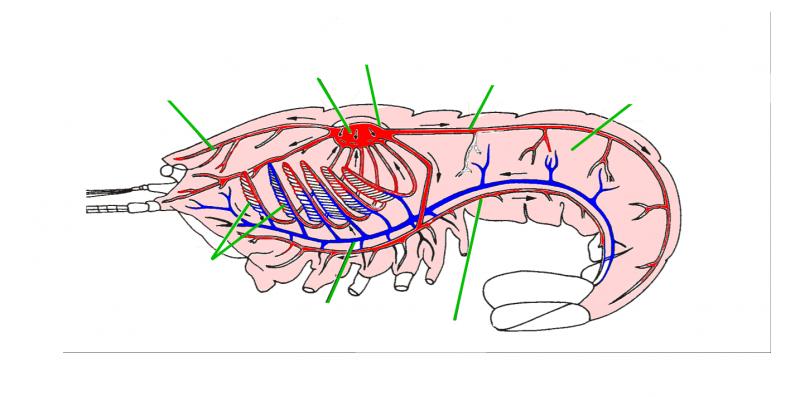 Sistema Circulatorio AbiertoVersion en ligne Consiste en un sistema de vasos conectados con un corazón, por medio de vasos sanguíneos abiertos se vierte y baña las células directamente (Lagunas) y regresa al corazón por distintos mecanismos (Aberturas valvulares). Este tipo de sistema se presenta en los artrópodos y en los moluscos no cefalópodos. par sofia aley 1 Aorta Cefálica 2 Corazón 3 Pericardio 4 Aorta Abdominal 5 Hemoceloma 6 Branquias Capilares Branquiales 7 Vena Ventral 8 Arteria Ventral