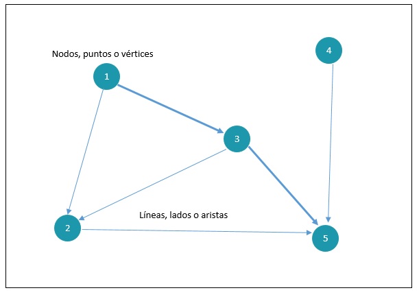 - Las aristas tienen una dirección, es decir, la línea inicia en un nodo, llamado origen, y se dirige hacia otro, llamado destino, indicando el sentido en que se da la relación entre ellos.