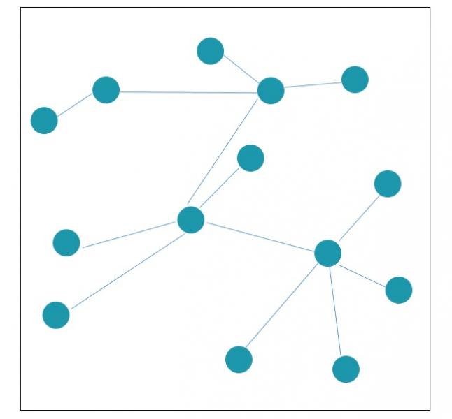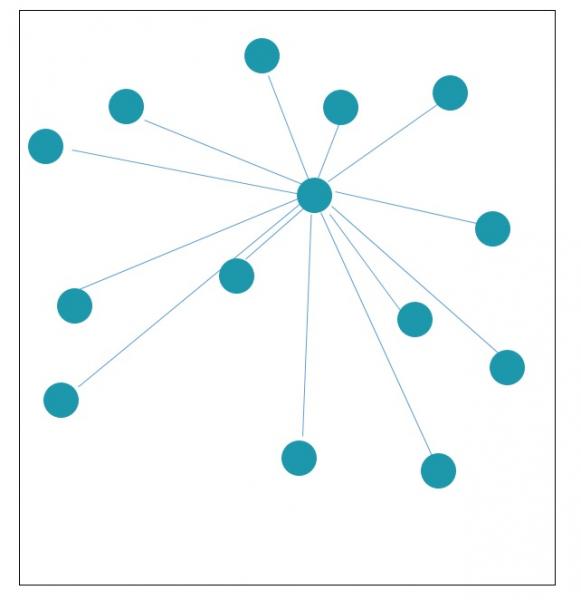 b) Policéntrica. – Estas redes están formadas por algunos nodos que concentran gran cantidad de líneas y están conectados entre sí. Una de las cualidades de esta configuración es que, si alguno de los nodos con alta densidad de líneas desaparece, todos los nodos que se conectaban con él quedan sin conexión al sistema.