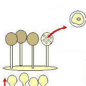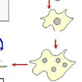 Memory Ciclo de un Mixomiceto típicoVersion en ligne Ciclo de vida de un Mixomiceto típico en 7 fases, con dibujos que hay que relacionar con la descripción de cada fase. Cartas ocultas par Carlos Romero Zarco Reproducción sexual: asentamiento del plasmodio y formación de esporangios Fase vegetativa diploide: plasmodio maduro y formación de esclerocios de resistencia Reproducción sexual: meiosis, formación y liberación de las esporas haploides Reproducción sexual: plasmogamia por medio de somatogamia de mixamebas o de mixoflagelados Reproducción sexual: cariogamia y desarrollo inmediato del cigoto diploide por mitosis interna (plasmodio joven) Reproducción sexual: germinación de las esporas y regeneración de la fase vegetativa haploide Fase vegetativa haploide: mixamebas y mixoflagelados interconvertibles