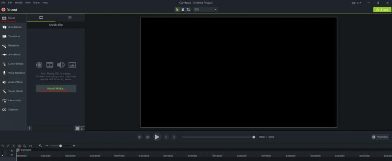 CamtasiaVersion en ligne Elementos de interfaz par Paula Cadena 1 Barra del menu (estas todas las opciones ) 2 record: abre consola de grabacion 3 lista de tareas:gestionar archivos 4 elementos multimedia:aqui se añade todos los archivos multimedia 5 reproductor o canvas: se vera el proceso del vídeo 6 linea de tiempo: añadir multimedia para la composición de nuestro vídeo