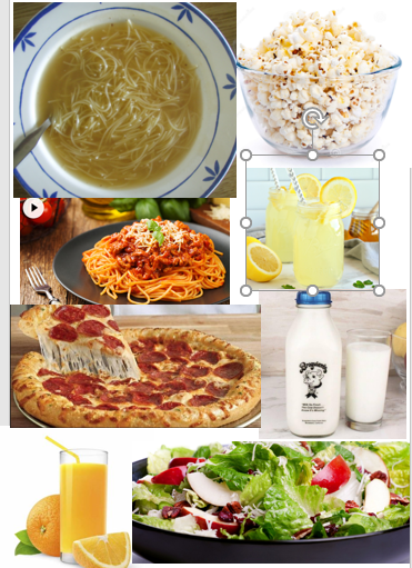 MARIO Y GUILLE. UNIT 6Version en ligne VOCABULARIO COMIDA INGLÉS par ELENA BAYO IGLESIAS 1 SOUP 2 POPCORN 3 PASTA 4 LEMONADE 5 PIZZA 6 MILK 7 JUICE 8 SALAD