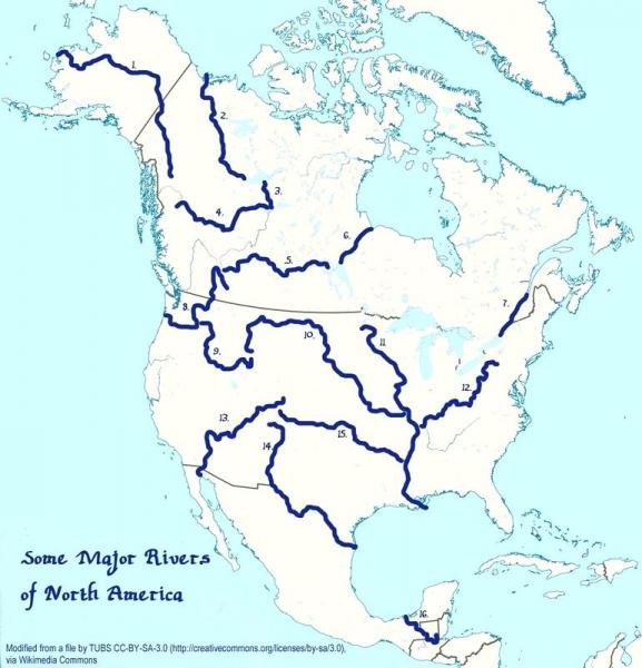 North AmericaVersion en ligne Map quiz ofvthebhydrosphere of north america par Sergio Sánchez Flores Alumnat 1 Mississipi 2 Yukon 3 Mackenzie 4 slave 5 Peace 6 Fraser 7 sask 8 missouri 9 snake 10 lawrence 11 Rio Grande