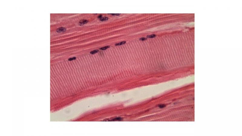 MúsculosVersion en ligne Contesta este test de acuerdo a la temática de Tejido Muscular par Natalia Cortés 1 Las células del músculo son conocidas también como: Escoge una o varias respuestas a Fibra b Miocito c Musculocito d Huso 2 El tejido de la imagen se llama Respuesta escrita 3 Tipo de músculo que se caracteriza por: células en forma de huso, un solo núcleo central y citoplasma liso. Respuesta escrita 4 La unión de extremo a extremo entre células adyacentes del músculo estriado cardíaco se llaman. Escoge una o varias respuestas a Desmosomas b Uniones GAP c Discos intercalares d Uniones comunicantes 5 La capa de tejido conectivo que se ubica entre cada fibra muscular se llama Escoge una o varias respuestas a Endomisio b Perimisio c Epimisio d Pericondrio 6 El corte transversal de la imagen corresponde a que tipo de músculo Respuesta escrita Explicación 1 Las células del músculo, también conocidas como miocitos o miofibras, son células elongadas con forma de huso o fibras. El término fibra en asociación con el músculo se refiere a células. 2 Se notan las estrías y tiene múltiples núcleos ubicados a la periferia 5 Los miocitos individuales son agrupados en fascículos. Dentro de un fascículo, un miocito individual es rodeado de tejido conectivo laxo que forma el endomisio. Cada fascículo está rodeado por fibras de tejido conectivo laxo, llamado perimisio. La mayoría de los músculos están rodeados en la superficie exterior por una capa de tejido conectivo denso irregular, el epimisio. 6 Se observan las estrías y un solo núcleo central