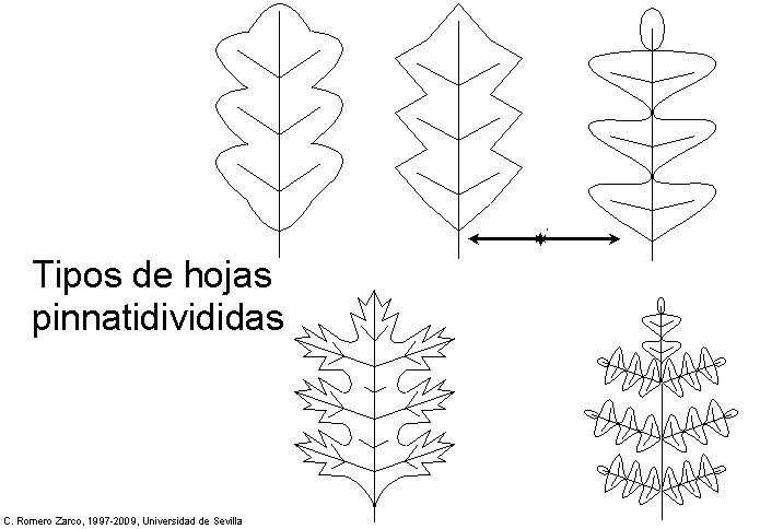 26-Tipos de hojas pinnatidivididasVersion en ligne Hay que localizar cada tipo de hoja sobre la figura par Carlos Romero Zarco 1 Hoja pinnatilobada 2 Hoja pinnatífida 3 Hoja pinnatisecta 4 Hoja bipinnatífida 5 Hoja bipinnatisecta