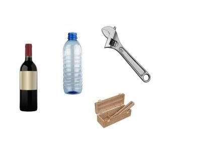 Material de objetosVersion en ligne Señala cada objeto con el material con el que está fabricado. par JOSE ANTONIO ROMERO ESPEJO 1 VIDRIO 2 PLASTICO 3 METAL 4 MADERA