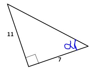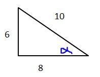 Razones trigonométricasVersion en ligne Ten en cuenta las razones trigonométricas para resolver el test. par ERIKA VELASCO 1 En el triángulo la razón trigonométrica seno es igual a a 6/10 b 6/8 c 8/6 d 8/10 2 En el triángulo la razón trigonométrica tangente es igual a a 6/10 b 6/8 c 8/6 d 8/10 3 En el triángulo la razón trigonométrica coseno es igual a a 3/4 b 4/3 c 3/5 d 4/5 4 El nombre del lado opuesto al ángulo recto en un triángulo rectángulo. a cateto opuesto b cateto adyacente c rectángulo d hipotenusa 5 Etimológicamente Trigonometría significa a Medir la tierra b medida de los triángulos c estudio de los ángulos d estudio de los triángulos 6 Si secante B = 12/7, es correcto afirmar que a Tang B= 7/12 b Cos B = 7/12 c Sen B= 7/12 d Csc B = 7/12 7 Si Tan D = 7/9, es correcto afirmar que a sen D = 7/√130 b Cos D = 7/√130 c Cot D = 7/9 d Sen D = 9/√130 8 Si Sen A = 12/13, entonces es correcto afirmar que a Tan A = 13/5 b Cos A = 5/12 c Csc A= 13/12 d Sec A= 5/12 9 El valor de X es a X = 9Tan30° b X = 9Cos30° c X = 9Sen30° d X = 9Sec30° 10 El valor de X a X = 8/cos60° b X = 8/Tan 60° c X = 8Cos 60° d X = 8/Sen 60° 11 En el triángulo la razón trigonométrica seno es igual a a 11/7 b 11/√170 c √110/ 11 d √170/11 12 En el triángulo la razón trigonométrica cosecante es igual a a csc ϴ = 16/√130 b csc ϴ = 16/√192 c csc ϴ = 8/√192 d csc ϴ = 8/√130 13 La altura aproximada del árbol es a ALTURA = 12.85 b ALTURA = 15.32 c ALTURA = 16.78 d ALTURA = 19.05 14 La altura aproximada el edificio es a ALTURA = 12m b ALTURA = 20.8m c ALTURA = 13.6m d ALTURA = 19.05m 15 El triángulo en el que se representa COT A= 12/9 ES a b c d 16 Por qué utiliza la razón tangente para solucionar el problema a Porque nos dan el ángulo de elevación y la distancia del punto penal. b porque nos dan el valor de la altura del arco y el ángulo de elevación. c porque los datos que tenemos es la altura del arco y la distancia al punto penal. d porque sabemos la distancia del punto penal y que el jugador en muy buen pateador. 17 El valor del seno α a 3X b 2X c 2 d 1/2 Explicación 1 Sen = CO/H 2 Tangente = CO/CA 3 Coseno = CA/ H 4 lados del triángulo rectángulo: catetos e hipotenusa. 5 Trigono= triángulo; métrica: medida 6 secante = H/CA 7 Tangente = CO/CA 8 Sen = CO/H 9 Tangente = CO/CA 10 Sen = CO/H 11 Sen = CO/H 12 CSC D = H/CO 13 se tiene la hipotenusa y se necesita el cateto opuesto al ángulo, por tanto se utiliza SENO 14 Se tiene un cateto adyacente que vale 24 y me preguntan por el otro cateto que en este caso sería la altura del edifico, por tanto puedo utilizar tangente o cotangente. 15 COTANGENTE es cateto adyacente sobre cateto opuesto al ángulo A 16 Tangente = CO/CA 17 Sen = CO/H = X/2X, simplificando las X.