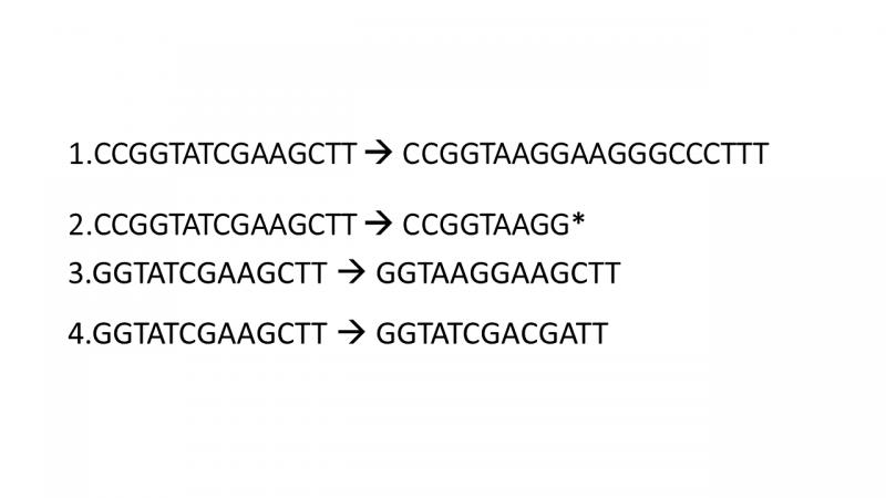 Indicador 2.2 MutacionesVersion en ligne Contestar las preguntas de árbol genealógico,mutaciones y proyecto genoma humano. par GUINNET PAOLA FUQUENE BUSTOS 1 En la cuarta generación ¿cuantas hijas de la pareja 3 y 4 (de la tercer generación) están afectadas? a 1 b 2 c 3 d 5 2 según el árbol genealógico en la segunda generación ¿cuántos hombres son sanos ? a 2 b 1 c 0 d 3 3 ¿cuántas generaciones hay en la imagen? y ¿cuántas mujeres hay entre la segunda y tercer generación? a 2 y 4 b 3 y 7 c 3 y 6 d 2 y 6 4 Según la imagen ¿cuál respuesta No es correcta para los objetivos del proyecto genoma humano? a Identificay determinar la secuencia de genes b Desarrollar y dirigir avances legales éticos c Determinar y desarrollar con tecnologías lentas de secuenciación d Acumular información en base de datos 5 ¿Qué significan las siguientes siglas? a Instituto Nacional de Busqueda en el Genoma Humano b Instituto Nacional del genoma humano c Instituto Nacional de salud del Genoma Humano d Instituto Nacional de Investigación del Genoma Humano 6 Según la imagen en la segunda generación cuantas mujeres y hombres están afectados? a 3 y 2 b 5 y 4 c 2 y 3 d 1 y 3 7 según la cadena ADN ¿Qué tipo de mutación es? a inversión b traslocación c delección d sustitución 8 según la cadena ADN ¿Qué tipo de mutación es? a inversión b traslocación c sustitución d inserción 9 según la cadena ADN ¿Qué tipo de mutación es? a sustitución b inserción c delección d reseción 10 según la cadena ADN ¿Qué tipo de mutación es? a reversión b inversión c traslocación d sustitución 11 Según la imagen el orden de las 4 cadenas sobre el tipo de mutación son: a insercion-traslocación-delección-sustitución b insercion-traslocación-delección-sustitución c insercion-delección-sustitución-inversión d sustitución-insercion-traslocación-delección 12 Este hombre tiene el síndrome de edwards? a cierto b falso 13 Según la imagen ¡Qué tipo de mutación es? a duplicación b transversión c inversión d traslocación 14 la imagen muestra el cariotipo de síndrome de turner a verdadero b falso 15 según el cariotipo ¿Que síndrome es? a síndrome patau b síndrome de down c síndrome de edwards d síndrome de turner Explicación 1 Revisa muy bien las reglas de arboles genealógicos 2 Revisa muy bien las reglas de arboles genealógicos 3 Revisa muy bien las reglas de arboles genealógicos 4 Revisar proyecto genoma humano 5 Revisar proyecto genoma humano 6 Revisa muy bien las reglas de arboles genealógicos 7 Revisar los tipos de mutaciones 8 Revisar los tipos de mutaciones 9 Revisar los tipos de mutaciones 10 Revisar los tipos de mutaciones 11 Revisar los tipos de mutaciones 12 Revisar los tipos de mutaciones 13 Revisar los tipos de mutaciones 14 Revisar los tipos de mutaciones 15 Revisar los tipos de mutaciones