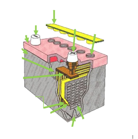 SISTEMA DE CARGA 3-BATERIAVersion en ligne La función principal de la batería consiste en aportar la corriente necesaria para la puesta en marcha del motor de arranque del vehículo, después continúa recargándose por medio del alternador. Además, también sirve de apoyo al alternador cuando éste no puede suministrar toda la corriente que requieren otros consumidores eléctricos del automóvil, como los accesorios de confort o seguridad. Podemos decir que la batería además de encargarse del sistema de encendido del motor, ofrece una alimentación a los equipos eléctricos cuando el automóvil está parado o apagado total del mismo, como el cierre centralizado, la radio, el sistema de iluminación o eleva vidrios. Debido al consumo de bajas cantidades de energía de estos y otros componentes, estos pueden llegar a descargar la batería si se somete a un uso prolongado de algunos de los ya mencionados. Otra situación en la que la batería sirve de soporte al alternador, es cuando el vehículo requiere una fuerte demanda de energía, como en el caso de tener el vehículo al ralentí. Si estamos en un atasco bajo la lluvia y de noche, por ejemplo, la batería cubrirá la electricidad requerida por los limpiaparabrisas, la calefacción, o los faros, ya que el motor no está aportando al alternador toda la potencia que éste necesita. par Majo Garrido 1 RECIPIENTE O CAJA 2 Tapa de orificios 3 Orificios 4 Borne positivo 5 Borne negativo 6 Electrolito 7 Placas negativas 8 Placas positivas: 9 Separadores 10 PUENTE DE ENLACE 11 DEPOSITO DE RESIDUOS 12 TAPA