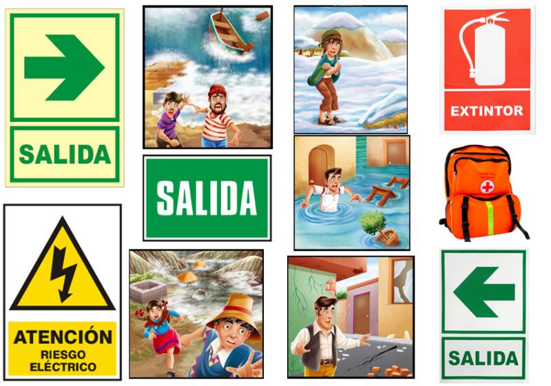 PERSONAL 1 - DESASTRES NATURALVersion en ligne Identifica los elementos que se mencionan relacionados a los desastres naturales par Luis Arenas 1 Señal de salida hacia la derecha 2 Señal de salida hacia la izquierda 3 Señal de ubicación del extintor 4 Señal de salida sobre las puerta 5 Señal de peligro por riesgo eléctrico 6 Mochila de emergencia 7 Imagen de una inundación 8 Imagen de un maremoto o tsunami 9 Imagen del friaje 10 Imagen de un huaico 11 Imagen de un terremoto