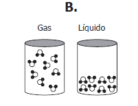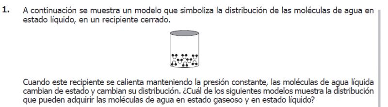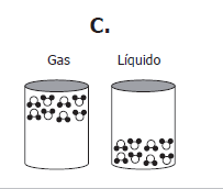¿Cuál de los siguientes modelos muestra la distribución que pueden adquirir las moléculas de agua en estado gaseoso y en estado líquido?