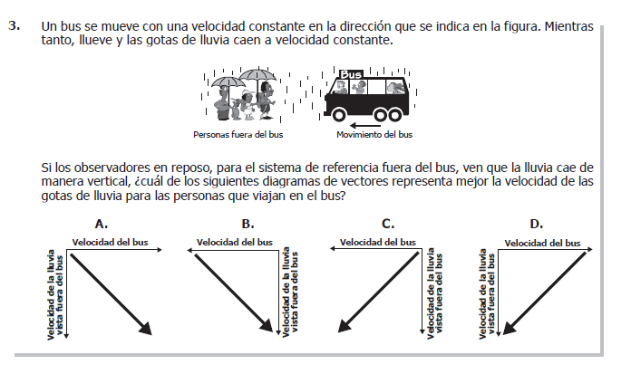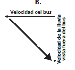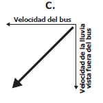 ¿cuál de los siguientes diagramas de vectores representa mejor la velocidad de las gotas de lluvia para las personas que viajan en el bus?