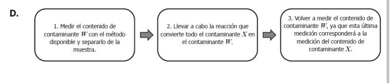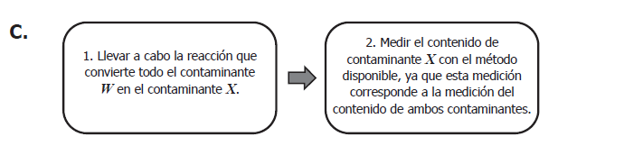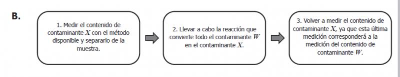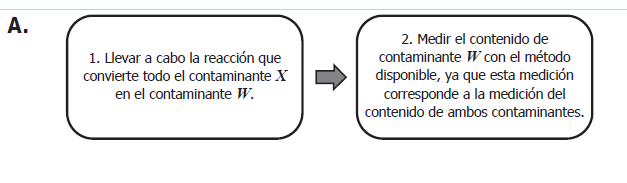 Unos investigadores quieren saber si el agua de la llave está contaminada por dos tipos de contaminantes (X y W). Los investigadores únicamente disponen de un método que permite medir la cantidad de contaminante X, pero saben que existe una reacción química mediante la cual pueden convertir todo el contaminante W en el contaminante X. Teniendo en cuenta esta información, si se quiere saber cuál es el contenido de contaminantes X y W, por separado, en una muestra de agua de la llave, ¿cuál sería el procedimiento adecuado?