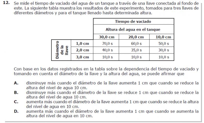 Con base en los datos registrados en la tabla sobre la dependencia del tiempo de vaciado y tomando en cuenta el diámetro de la llave y la altura del agua, se puede afirmar que