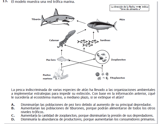 Con base en la información anterior, ¿qué le sucedería al ecosistema marino, a mediano plazo, si se extingue el atún?