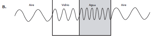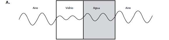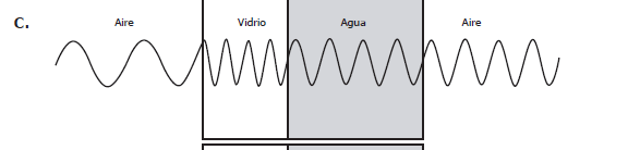 ¿cuál de las siguientes gráficas representa mejor la longitud de onda de luz en los tres materiales?