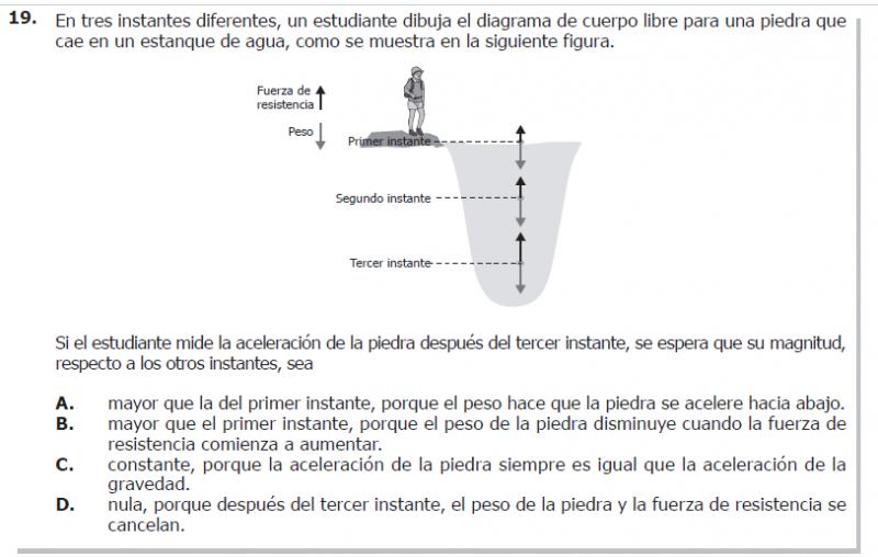 Si el estudiante mide la aceleración de la piedra después del tercer instante, se espera que su magnitud, respecto a los otros instantes, sea