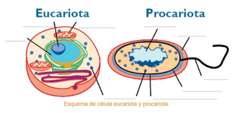 Célula eucariota y procariotaVersion en ligne Componentes esenciales par Ernesto García López 1 Núcleo 2 Nucleolo 3 Mitocondria 4 Ribosomas 5 Nucleoide 6 Membrana plasmatica 7 Pared celular 8 Flagelo