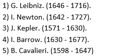 SESIÓN N⁰ 01 - TEST 1 Version en ligne Título: Historia de la Derivada par Susana Chancusi Toapanta 1 ¿Quién descubrió el Cálculo y en qué año? a Gottfried Leibniz en 1675 b Isaac Newton en 1665 c Isaac Barrow en 1665 2 ¿Quién demostró que la derivación y la integración son operaciones inversas? a Isaac Barrow b Johannes Kepler c Bonaventura Cavalieri 3 Responda con verdadero o falso a cada una de las siguientes afirmaciones, relacionadas con el año de nacimiento y defunción de los personajes contribuidores del cálculo: a 1V, 2F, 3V, 4F,5V b 1V, 2V, 3V, 4V,5V c 1F, 2V, 3V, 4V,5F 4 ¿A qué se refiere el término infinitesimal? a Cantidad infinitamente pequeña. b Cantidad infinitamente grande. c Ninguna de las anteriores 5 ¿Qué conceptos de tipo geométrico dieron origen a las derivadas? a 1, 2 b 2,3 c 1, 3