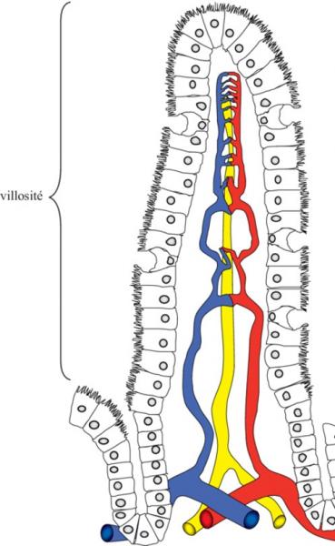 villosité intestinaleVersion en ligne villosité intestinale par marlene gonzalez sances 1 Entérocyte 2 Cellule caliciforme 3 Chylifère 4 Artériole 5 Veinule 6 Lamina propria 7 Crypte 8 Lumiere 9 Capillaire
