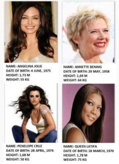 Adjectives degreesVersion en ligne Choose the correct option to complete the sentences. par Ana Aveiro 1 Queen Latifa is ... than Angelina Jolie. (old) a more old than b more older c older than d more oldest than 2 Queen Latifa is ... of all. (tall) a the taller b the tallest c the most tall d the more tallest 3 Penelope Cruz is ... Annette Bening. (young) a younger than b youngest than c more young than d the most young 4 Angelina Jolie is ... Penelope Cruz. (beautiful) a most beautiful than b beautifuller than c the most beautiful d more beautiful than 5 Angelina Jolie is ... . (beautiful) a the more beautiful b the beautifullest c the most beautiful d more beautiful than 6 Angelina Jolie is ... Penelope Cruz. (heavy) a heavier than b the more heavy than c more heavy than d the most heavier than 7 Queen Latifa is ... of all. (heavy) a the most heavy b the most heaviest c more heavy d the heaviest