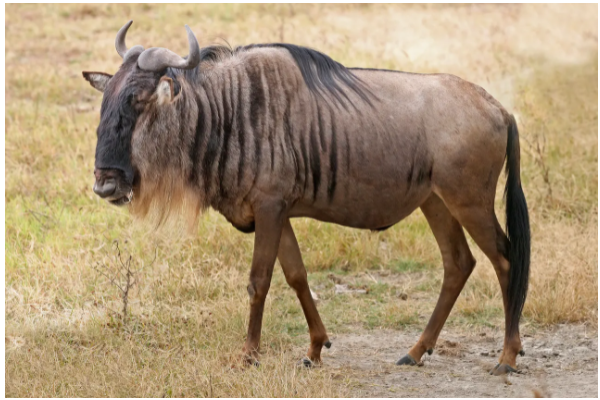 El animal que se muestra en la imagen, se conoce como el "Ñu común". La rapidez que puede alcanzar es de 80,5 km/h. ¿Cuánto puede recorrer si mantiene esa rapidez durante 5 minutos? Expresar el resultado en metros.