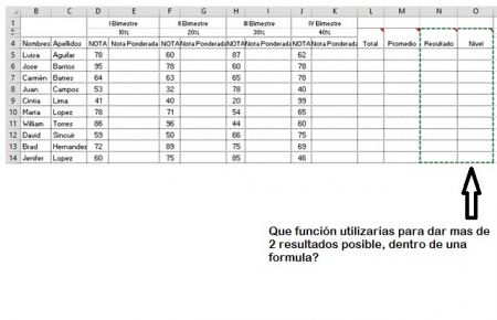 Excel Laboratorio_1Version en ligne Preguntas sobre estructuración de formulas de excel. par Walter Stuardo Monterroso Monzón 1 Cual es la formula correcta para sacar promedio? a =Promedio(A2:D2) b =(A2:D2)/4 c =suma(A2:D2)/4 d =(A2+B2+C2+D2)/4 2 Cuantas Columnas tiene Excel 2010? a 16289 columnas 1048576 Filas b 16384 columnas 1048576 Filas c 174526 columnas 1049876 Filas 3 Cual es el nombre de esta herramienta? a Insertar Función b Incorporar Funciones c Las respuestas anteriores son correctas. 4 Que función se utiliza para sumar? a A). =suma(A2:D2) b B). =(A2+B2+C2+D2) c La opción A Y B son correctas. 5 Que nombre tiene el lugar donde se señala con la flecha? a Hojas b Libros c Ambas son correctas 6 Cual es el nombre del las flechas que señala? a A2 b Celdas c Las respuestas anteriores son correctas. 7 Que formula o función utilizarias para determinar la hora y fecha del sistema? a =Hora(hoy()+hoy()) b =Hoy() c =AHORA() 8 Cual el el logo de Excel? a b c 9 Que funcion utilizarias? a Y b O c SI 10 Que funcion utilizarias? a =SI(Y( b =SI(O( c =SI(